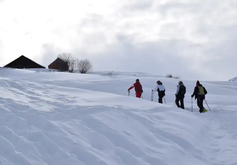 Embark on a snowshoe hike on a wild slope in Saint-Jean-d’Arves, far from the hustle and bustle of the ski slopes. From the meeting point in Les Chambons, opposite Clos d’Ornon, you’ll discover unspoiled areas where calm and raw nature reign supreme. An ideal outing to disconnect and fully enjoy the authentic mountain atmosphere.